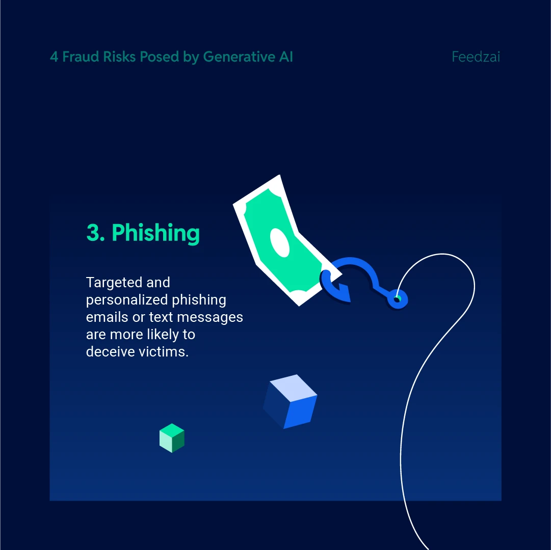 GenAI fraud involves using generative AI to create convincing fake content like deepfakes (manipulated audio/video), synthetic identities, and realistic phishing emails or text messages. Fraudsters leverage GenAI to automate and scale scams, making it easier to bypass traditional security and verification methods, ultimately leading to financial losses and identity theft.